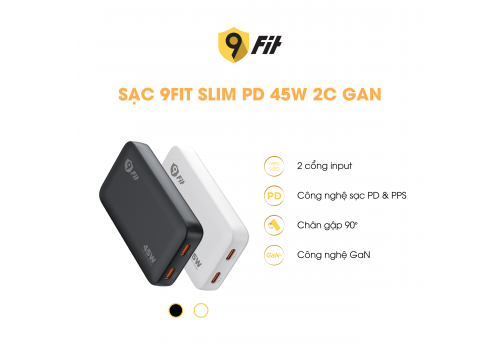 Sạc 9FIT Slim PD 45W 2C GaN là giải pháp sạc nhanh mạnh mẽ nhưng vẫn nhỏ gọn, tiện lợi. Với thiết kế siêu mỏng chỉ 14.5mm, sản phẩm dễ dàng mang theo mọi lúc mọi nơi mà không chiếm nhiều diện tích. Cùng khám phá ngay những tính năng vượt trội của sản phẩm này!